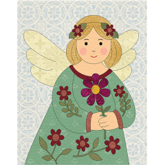 Wearing a soft smile, this angel offers a flower as a symbol of beauty, generosity, and festive cheer.